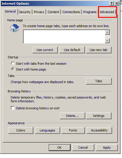 Open Internet Explorer again, will see the home page load correctly.